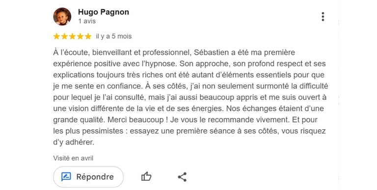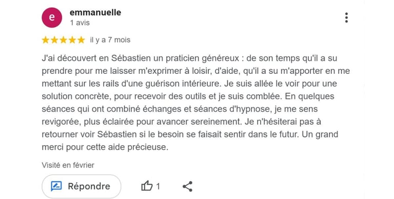 L'hypnose n'est pas un traitement médical. Elle peut compléter un suivi médical ou psychologique, mais ne le remplace pas.